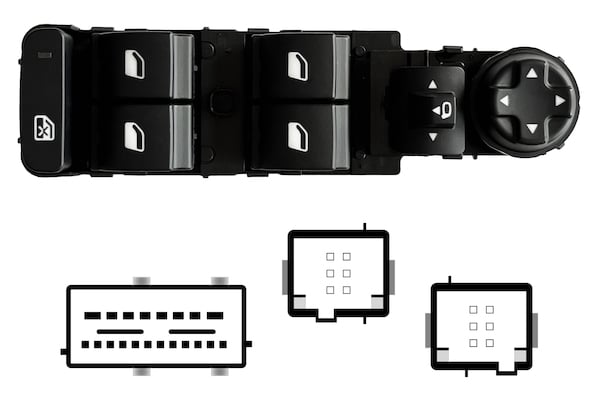 BLOCCO COMANDI ALZACRISTALLI PORTA ANTERIORE SINISTRO, RETROVISORI RIBALTABILI ELETTRICAMENTE, ALZACRISTALLI POSTERIORI ELETTRICI, 4 INTERRUTORI 20 PIN