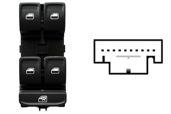BLOCCO COMANDI ALZACRISTALLI PORTA ANTERIORE SINISTRA, ALZACRISTALLI POSTERIORI ELETTRICI, COLORE NERO/BIANCO, 4 INTERRUTTORI 10 PIN