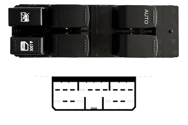 BLOCCO COMANDI ALZACRISTALLI PORTA ANTERIORE SINISTRA, ALZACRISTALLI POSTERIORI ELETTRICI, 4 INTERRUTTORI 13 PIN