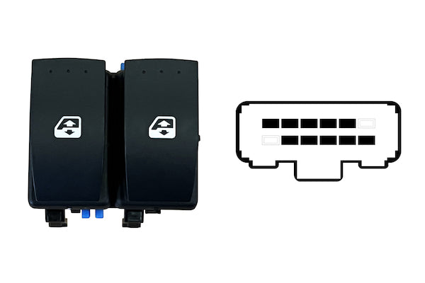 BLOCCO COMANDI ALZACRISTALLI , PORTA ANTERIORE SINISTRA, 2 INTERRUTORI 10 PIN, CONNETTORE BLU