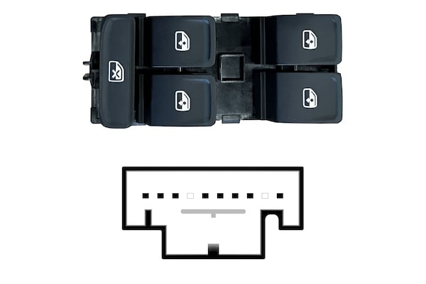 BLOCCO COMANDI ALZACRISTALLI PORTA ANTERIORE SINISTRA, ALZACRISTALLI POSTERIORI ELETTRICI,COLORE NERO/BIANCO,4 INTERRUTTORI 8 PIN