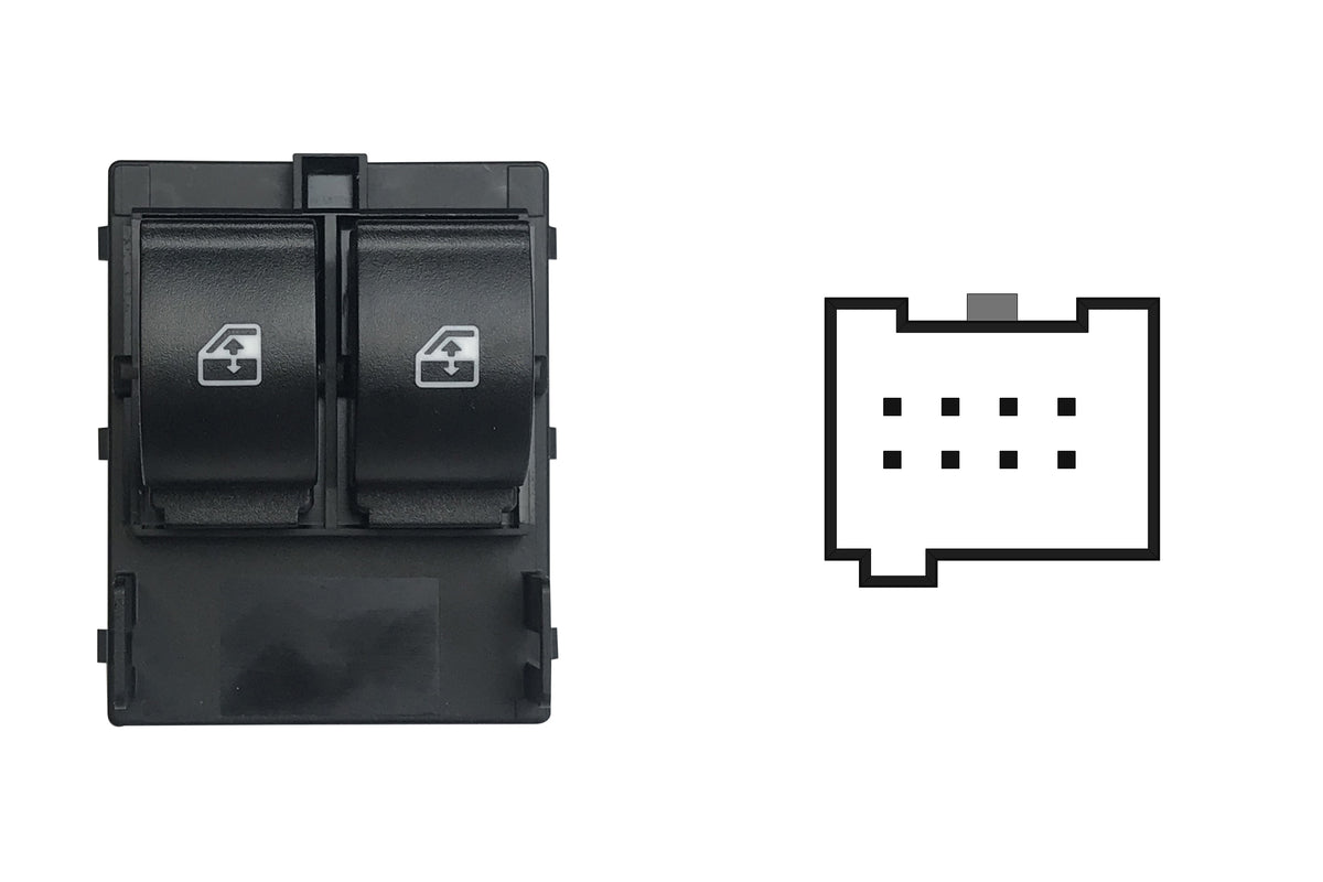BLOCCO COMANDI ALZACRISTALLI PORTA ANTERIORE SINISTRA, ALZACRISTALLI POSTERIORI MANUALI O ASSENTI, SENZA INTERRUTTORE BLOCCO PORTE,2 INTERRUTTORI, 8 PIN