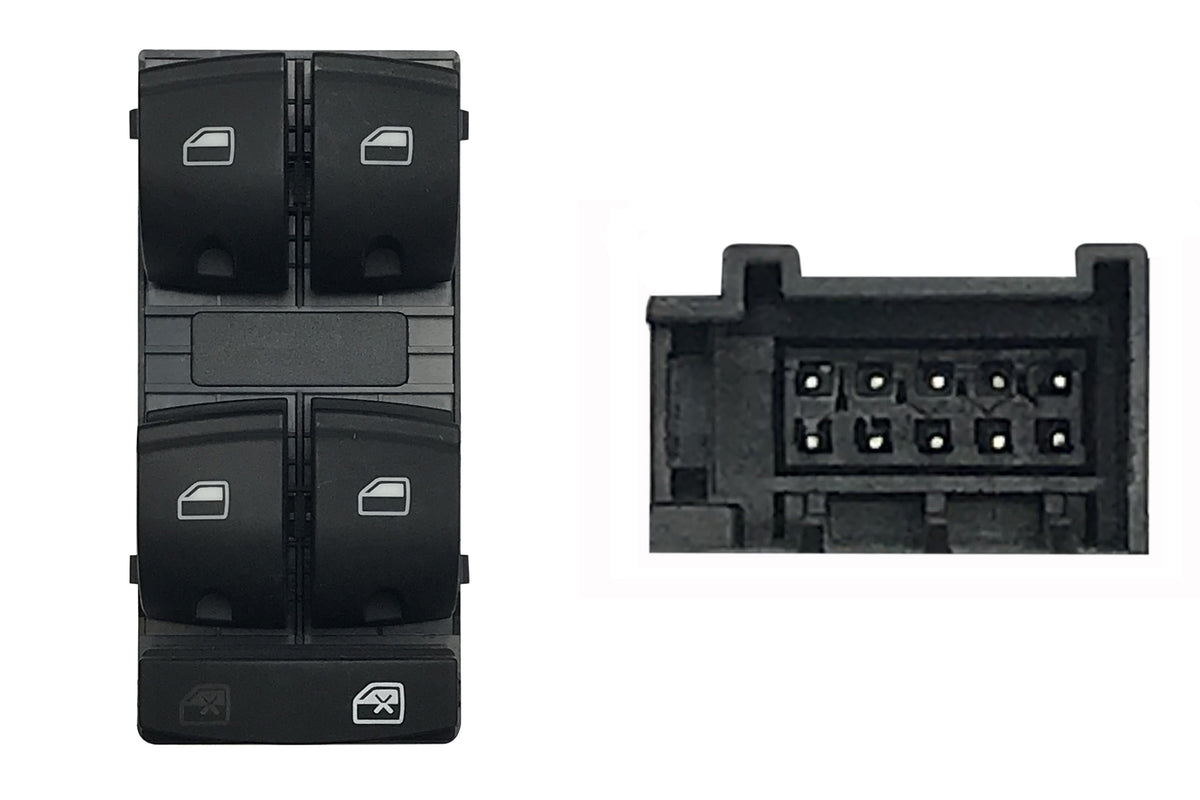 BLOCCO COMANDI ALZACRISTALLI PORTA ANTERIORE SINISTRA ALZACRISTALLI POSTERIORI ELETTRICI COLORE NERO/BIANCO 4 INTERRUTTORI 10 PIN