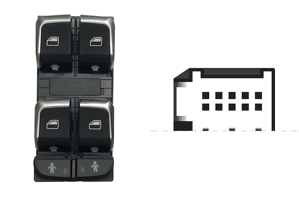 BLOCCO COMANDI ALZACRISTALLI PORTA ANTERIORE SINISTRA ALZACRISTALLI POSTERIORI ELETTRICI COLORE NERO/CROMO, 4 INTERRUTTORI 10 PIN