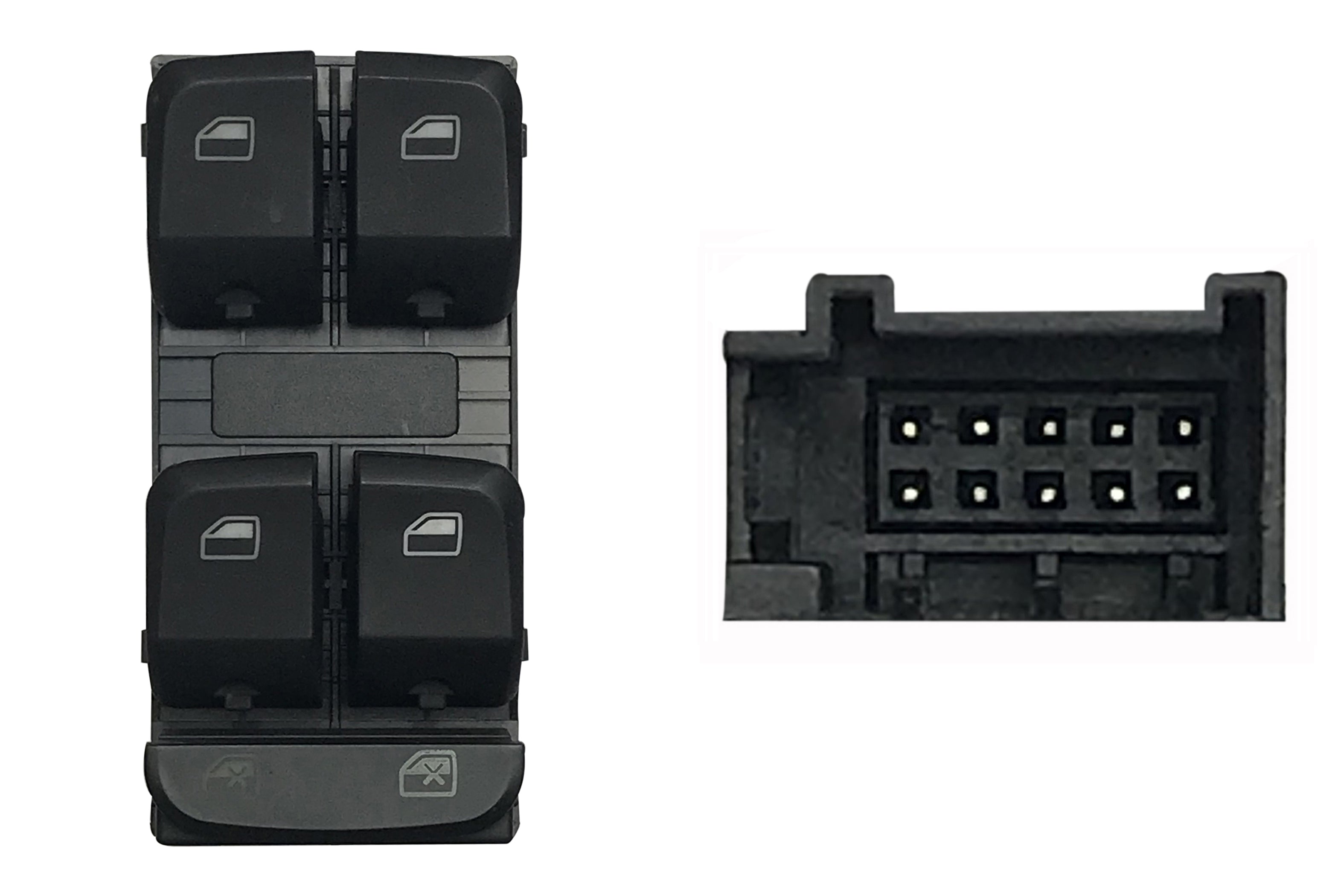 BLOCCO COMANDI ALZACRISTALLI PORTA ANTERIORE SINISTRA ALZACRISTALLI POSTERIORI ELETTRICI COLORE NERO/BIANCO 4 INTERRUTTORI 10 PIN
