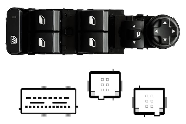 BLOCCO COMANDI ALZACRISTALLI PORTA ANTERIORE SINISTRA, RETROVISORI ELETTRICI NON RIPIEGABILI ELETTRICAMENTE,ALZACRISTALLI POSTERIORI ELETTRICI,4 INTERRUTTORI 20 PIN