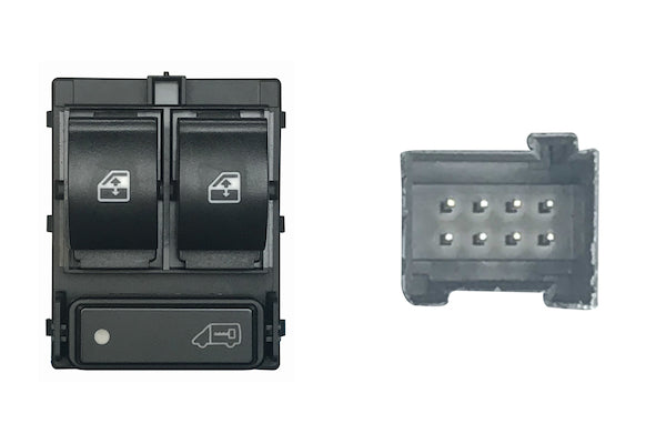 BLOCCO COMANDI ALZACRISTALLI ANTERIORI PORTA ANTERIORE SINISTRA ,RETROVISORI NON RIBALTABILI ELETTRICAMENTE, CON BLOCCO PORTE (CON LOGO FURGONE),COLORE GRIGIO, 2 INTERRUTTORI 8 PIN